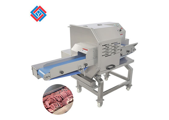 O novo tipo de cortador da carne do supermercado fino controla a velocidade da faca e velocidade do transtorte pela conversão de frequência dobro, corta tiras do alimento em partes, e envia-as para fora ordenadamente na correia transportadora; Pode ser a carne de porco assada processada, carne, barriga da carne, salsicha gorda e a outra carne cozinhada ou sobre a carne congelada 0° tal como a salsicha, o bacon, o presunto, a salsicha, etc., pode igualmente ser cortada em fatias de vegetais de raiz. Apropriado para a fábrica da carne, cozinha central, cantina da escola, restaurante, supermercado, mercado de carne que processa, fábrica de tratamento do alimento e assim por diante.